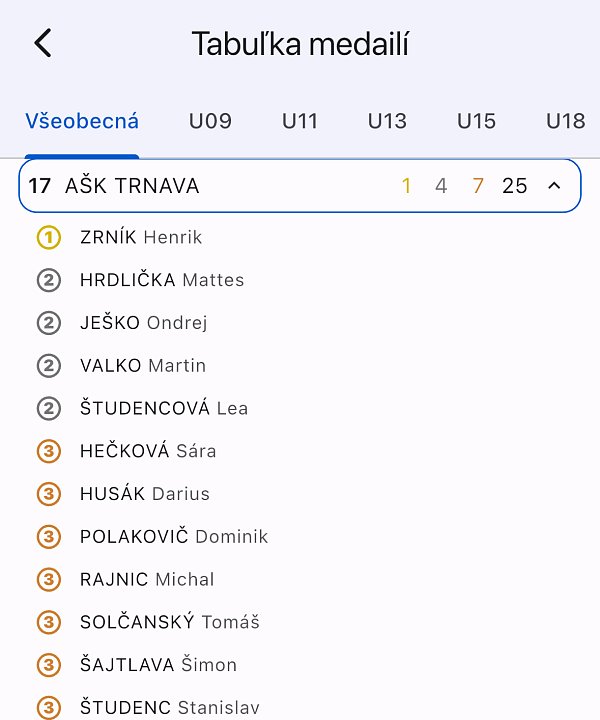 V sobotu (15.11.2025) sa v martinskej športovej hale konala posledná Medzinárodná veľká cena v tomto roku, kde si mohli porovnať sily 534 pretekárov, 51 klubov z Českej republiky, Poľska, Ukrajiny spolu s džudistami z rôznych slovenských klubov. Džudisti z Judo Clubu AŠK Slávia Trnava sa svojím úsilím pričinili o dvanásť cenných kovov. Získali jedenkrát zlato, štyrikrát striebro, sedemkrát bronz, jedenkrát štvrté miesto, dvakrát bodované piate miesto a sedemkrát siedme miesto. Celý trnavský tím bol pod drobnohľadom trénerov Ivany Komlóšiovej a Ivana Hrnčiara.